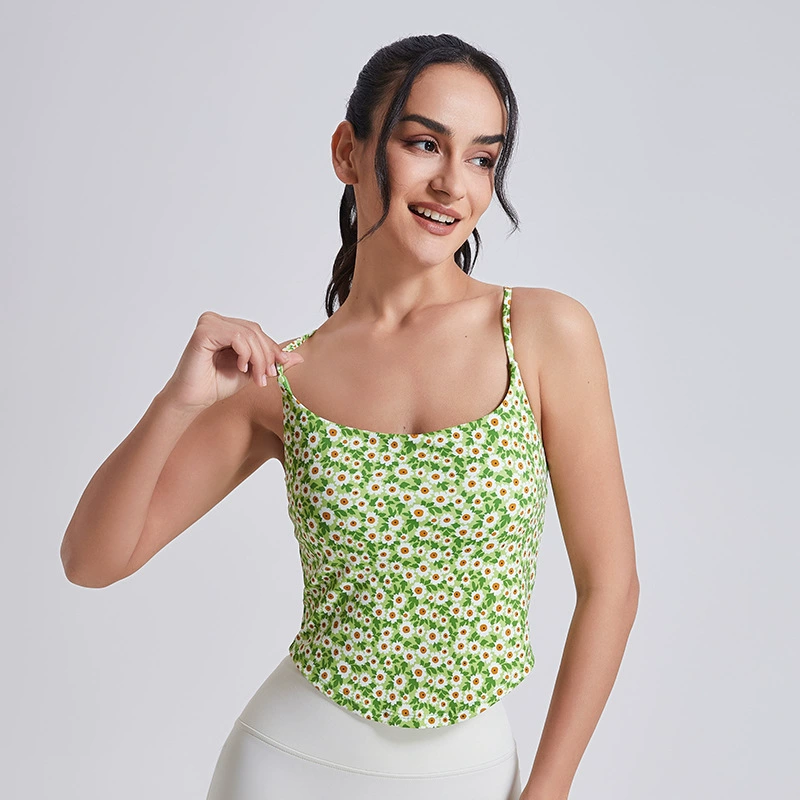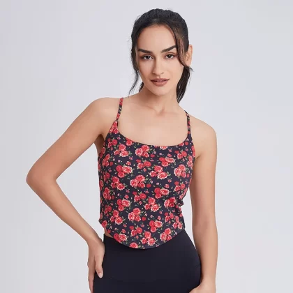 | nameOriginal | Double shoulder strap fixed cup yoga wear floral sports tank top |