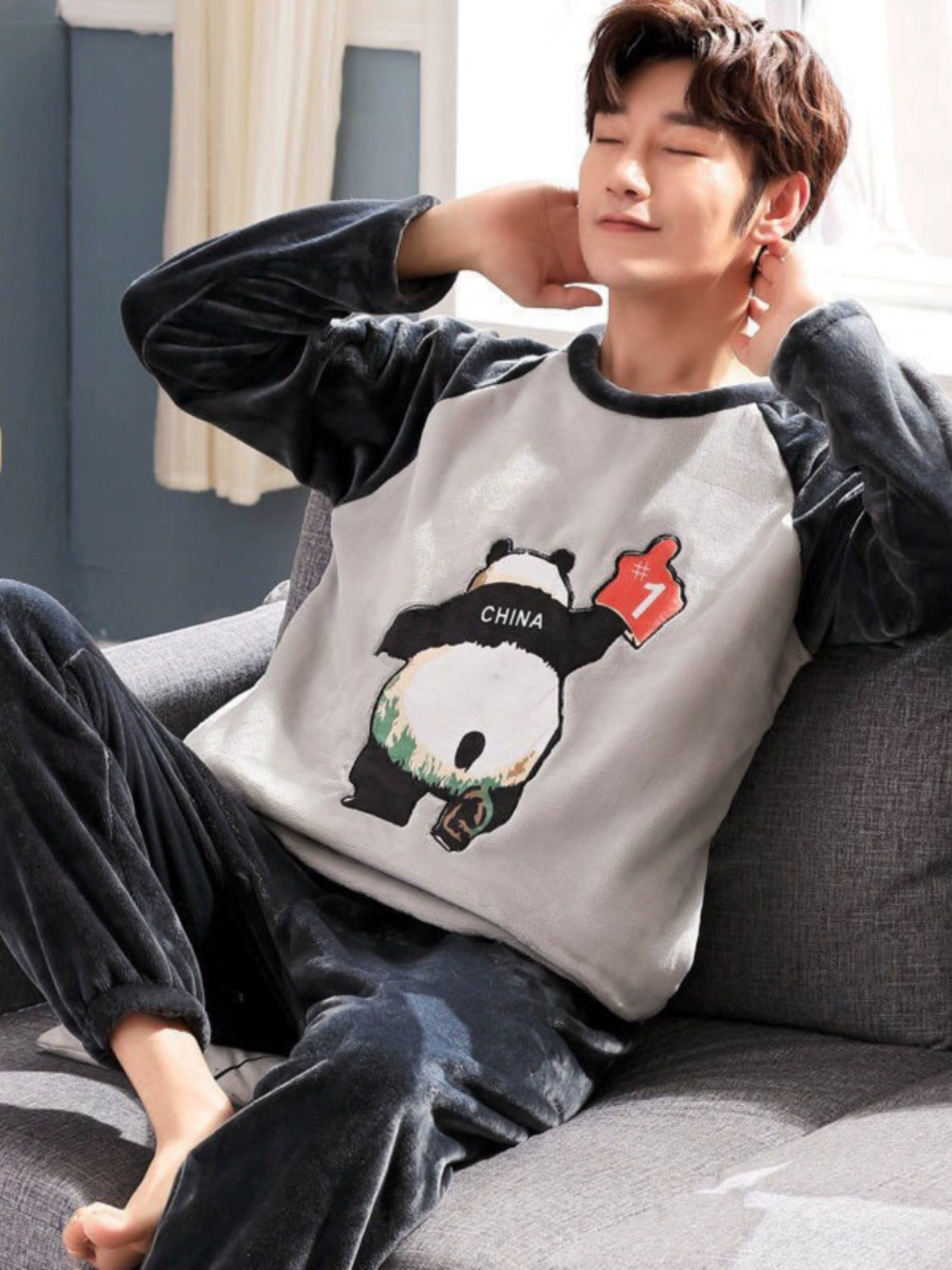 | nameOriginal | Double-sided coral velvet pajamas for men in autumn and winter plus velvet and thickened cartoon youth flannel home clothes set |