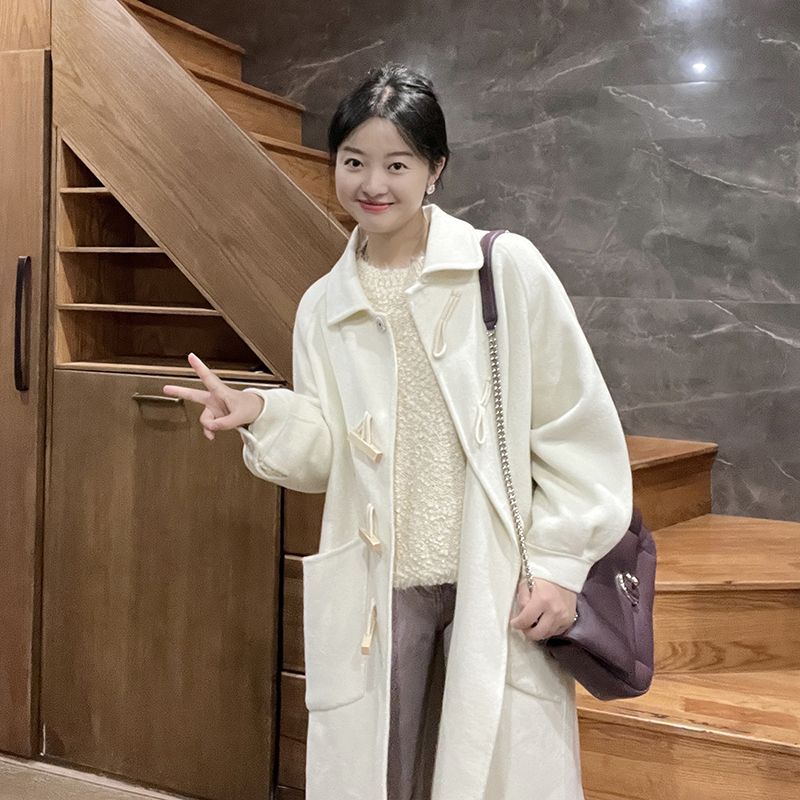 Double-sided Fleece Wool Coat Women's Mid-length High-end Small Man Corner Buckle Lantern Sleeve Doll Collar Woolen Coat Trendy