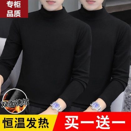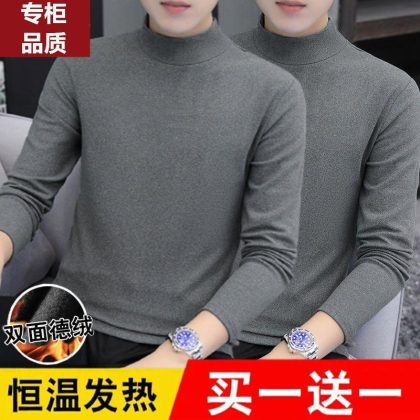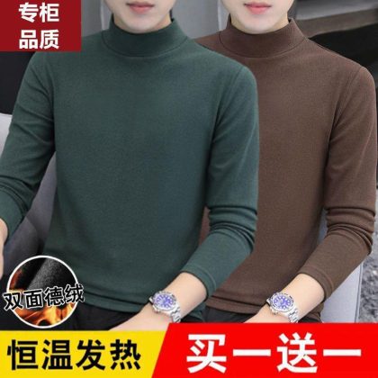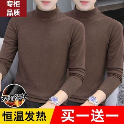 Double-sided Velvet Half-high Collar Base Shirt Men's Solid Color Long-sleeved Shirt Autumn Clothes fleece-lined Thickened Thermal Underwear