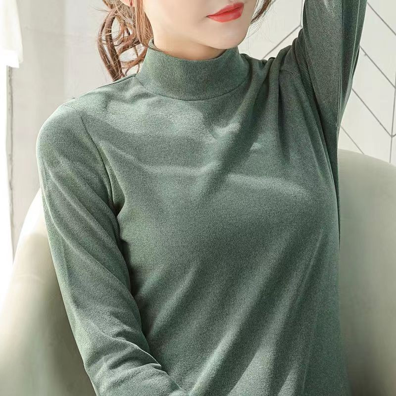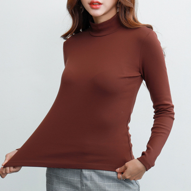 Double-sided velvet warm bottoming shirt women's autumn and winter solid color top South Korea women's clothing fleece-lined slim T-shirt long sleeve women's clothing