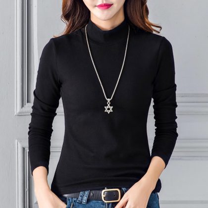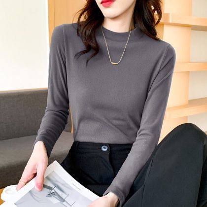 قميص نسائي مخملي دافئ على الوجهين للخريف والشتاء بلون علوي ملابس نسائية من كوريا الجنوبية تي شيرت نحيف مبطن بالصوف ملابس نسائية بأكمام طويلة