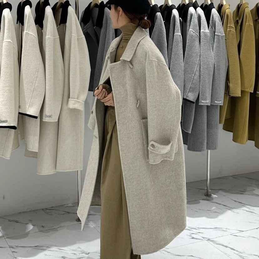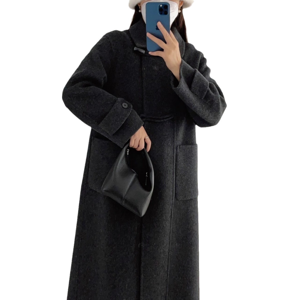 | nameOriginal | Double-sided wool coat long doll collar horn buckle thickened large pocket warm high-end cashmere double-sided coat |