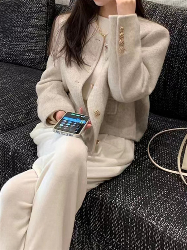 | nameOriginal | Double-sided wool coat short small round neck Chanel style commuter cashmere double-sided woolen coat for women |