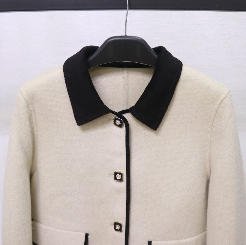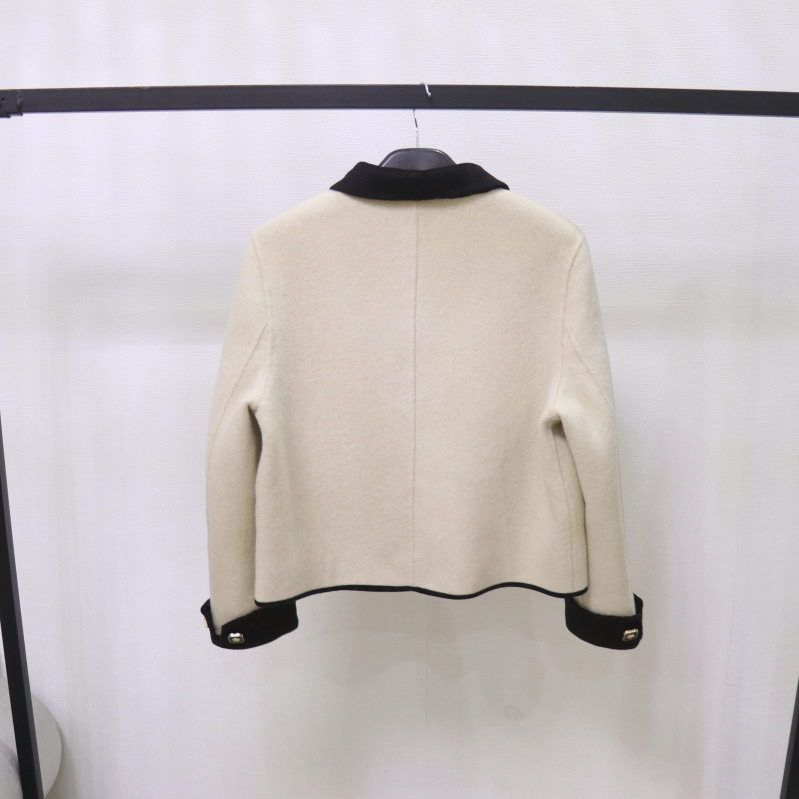 معطف صوف نسائي قصير على الوجهين من الصوف بنمط شانيل على الطراز الكوري وخياطة بألوان متباينة يقلل من عمر معطف صوفي مزاجي غير رسمي