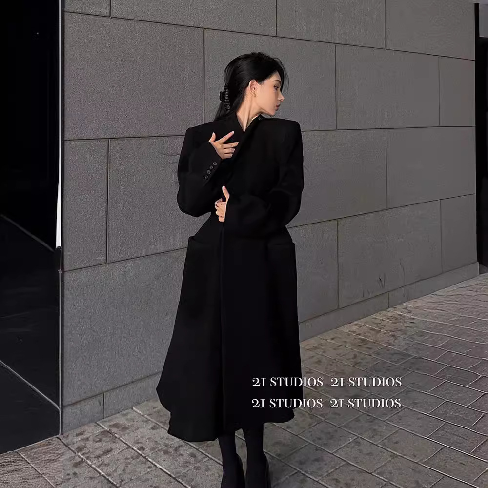 | nameOriginal | Double-Sided Woolen Cashmere Coat Autumn and Winter High-Level Slim-Fit Black Full Wool Coat Women's Mid-Long Hepburn Coat |