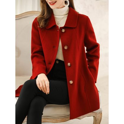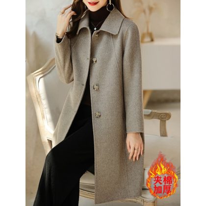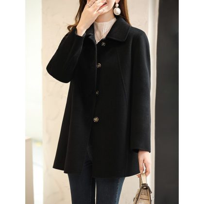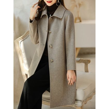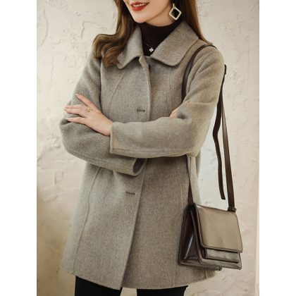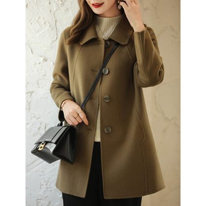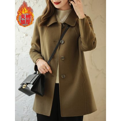 معطف صوفي على الوجهين للنساء متوسط ​​الطول 2023 خريف وشتاء جديد معطف صوفي راقي صغير صفر معطف من الكشمير