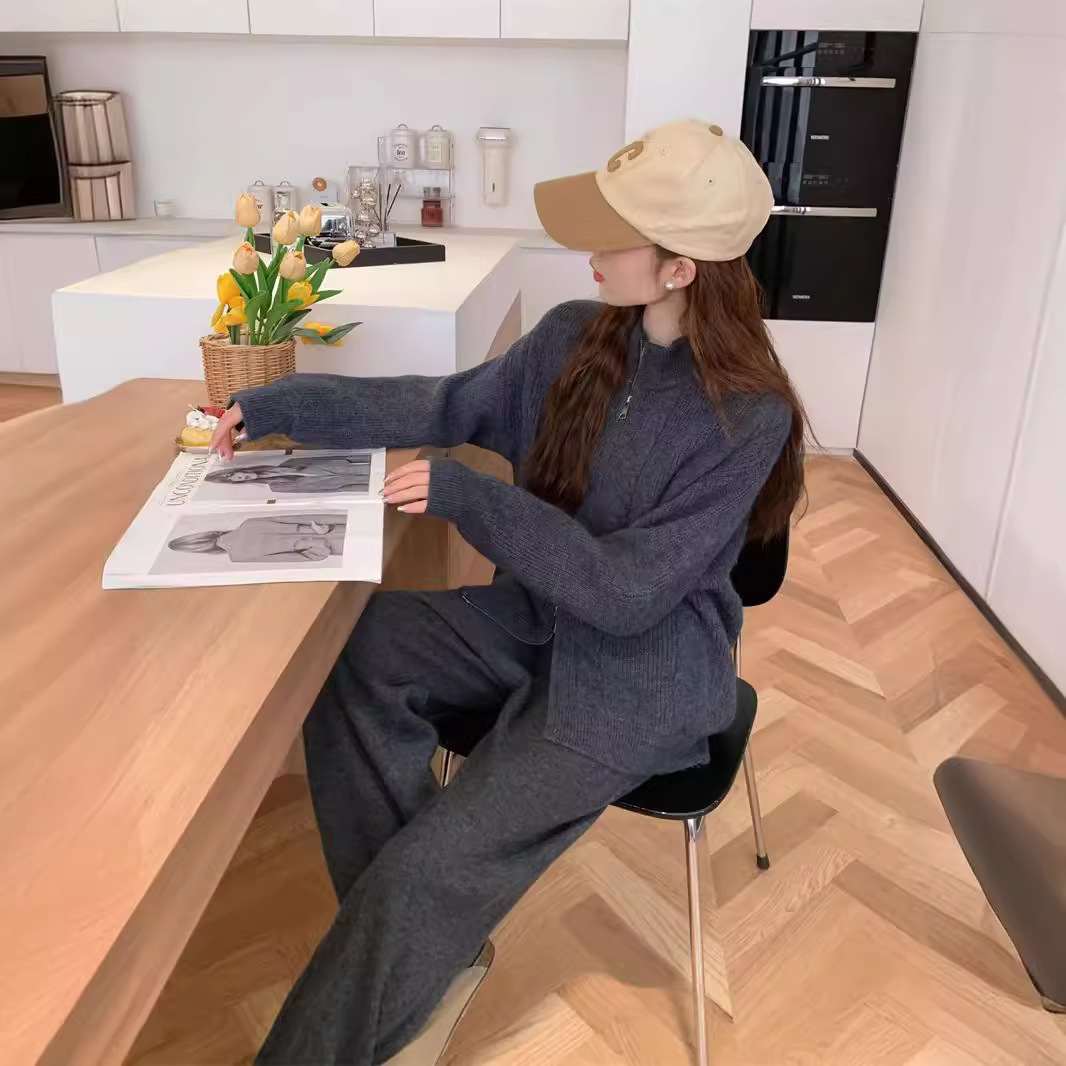 | nameOriginal | Double Zipper Sweater suit Women's Autumn and Winter New Korean-style Loose Retro Twist Knitted Cardigan Wide-leg Pants Two-piece Set |