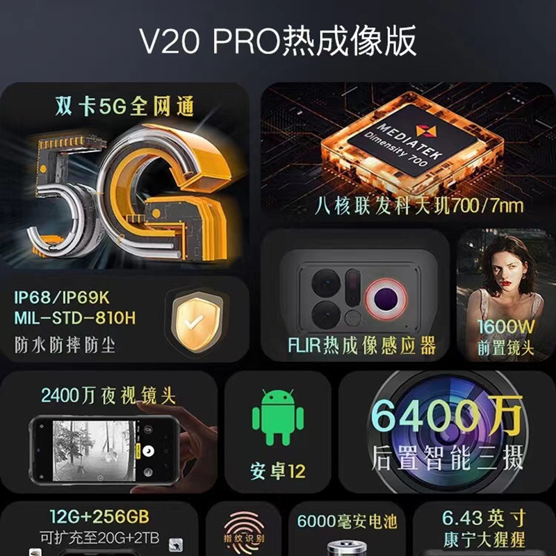 Doug DOOGEE V20PRO thermal imaging Tianqi 700 all Netcom double 5G three-proof smart phone Night Vision Waterproof