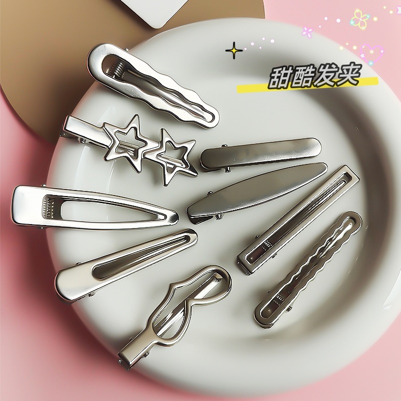 | nameOriginal | Douyin Same Style Metal Silver Sweet Cool Hairpin Simple Bangs Broken Hairpin Duckbill Clip DIY Handmade Hair Accessories |