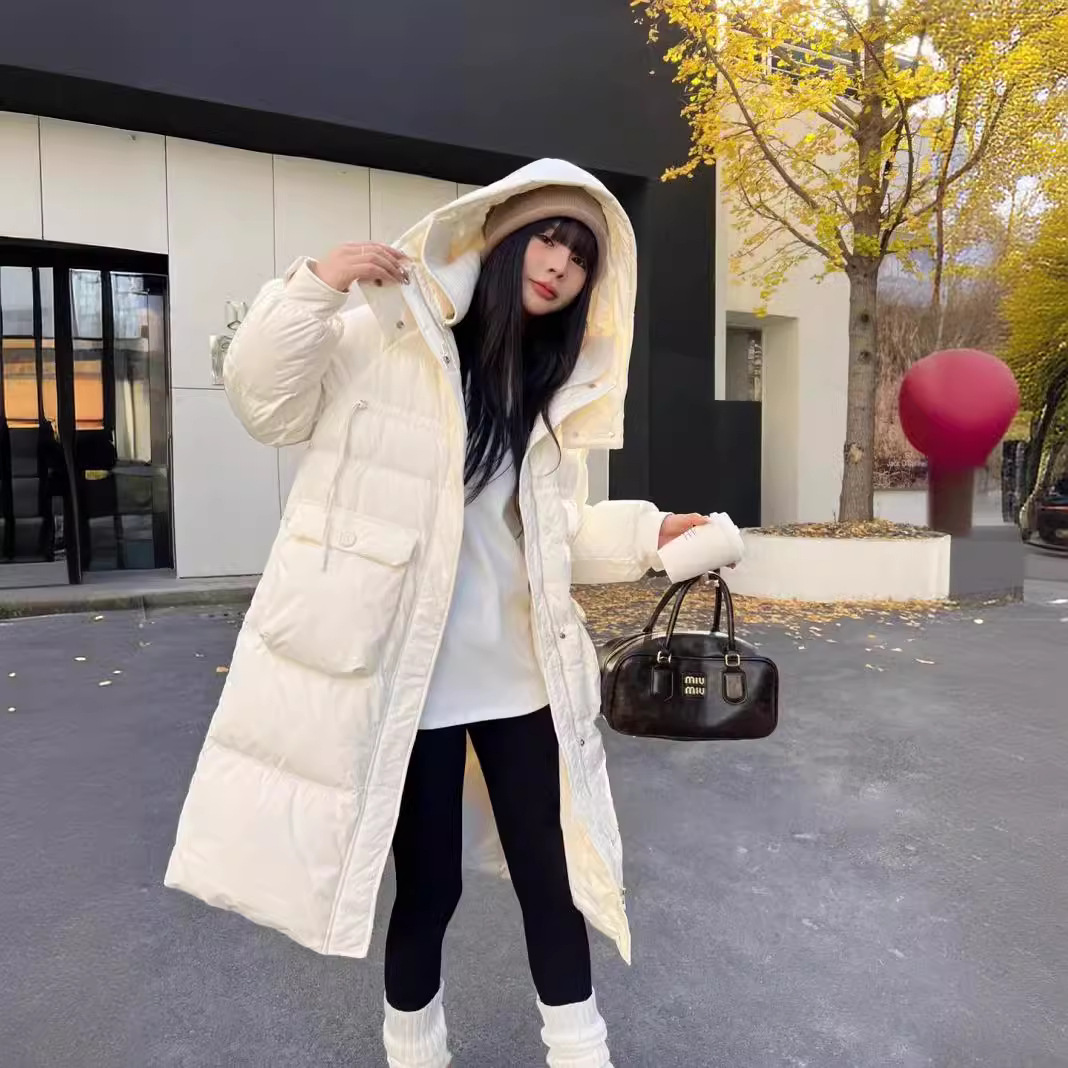 | nameOriginal | Down Jacket Women's Mid-length Over-the-knee 2024 New Winter Korean Style Loose Thickened Hooded Fashionable White Duck Down Jacket |