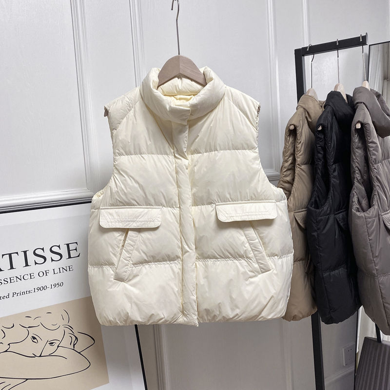 Down Vest Women's outer wear 2023 new western style cocoon white duck down vest stand collar vest winter sleeveless Korean short
