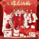 صندوق هدايا لحديثي الولادة على شكل سنة التنين للربيع والصيف والخريف والشتاء ملابس أطفال حمراء بدلة أطفال حديثي الولادة هدية لوازم راقية