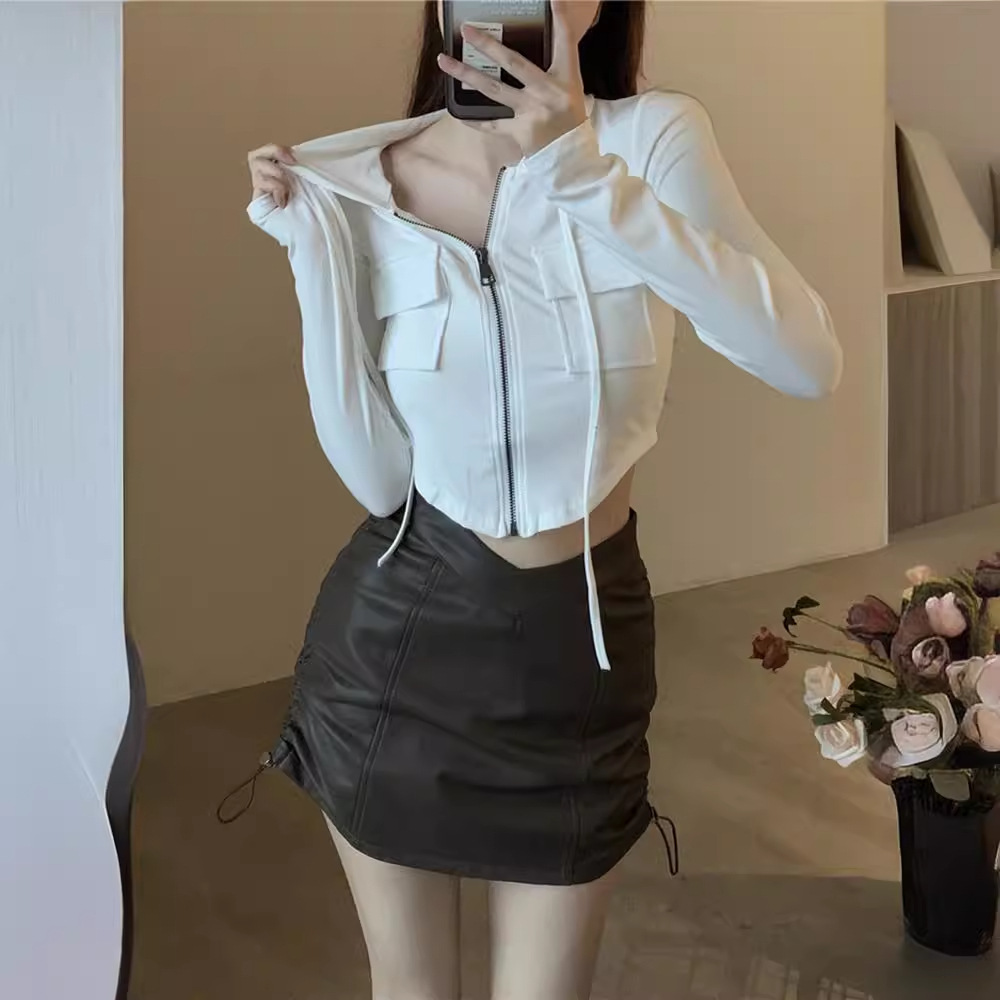 | nameOriginal | Drawstring Zipper Cardigan Women's Jacket Slim-Fit Slimming American Style New Simple All-Match Design Niche Long-Sleeved Top |