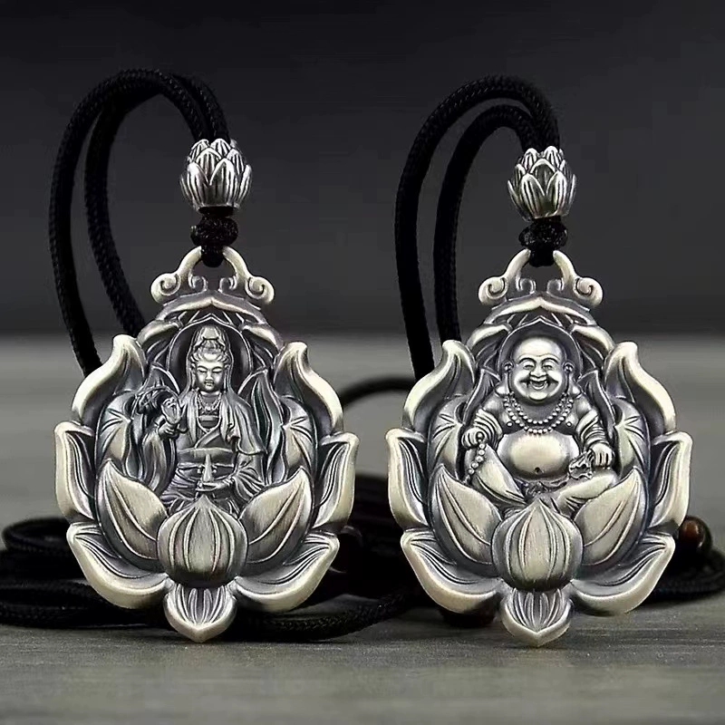 Dripping Guanyin Bodhisattva sterling silver pendant s999 pure silver necklace Maitreya Buddha Lotus Buddha statue pure silver pendant for men and women