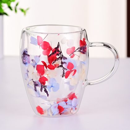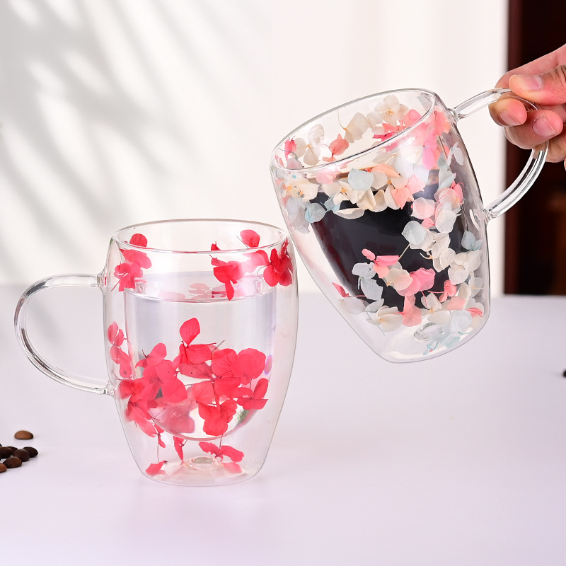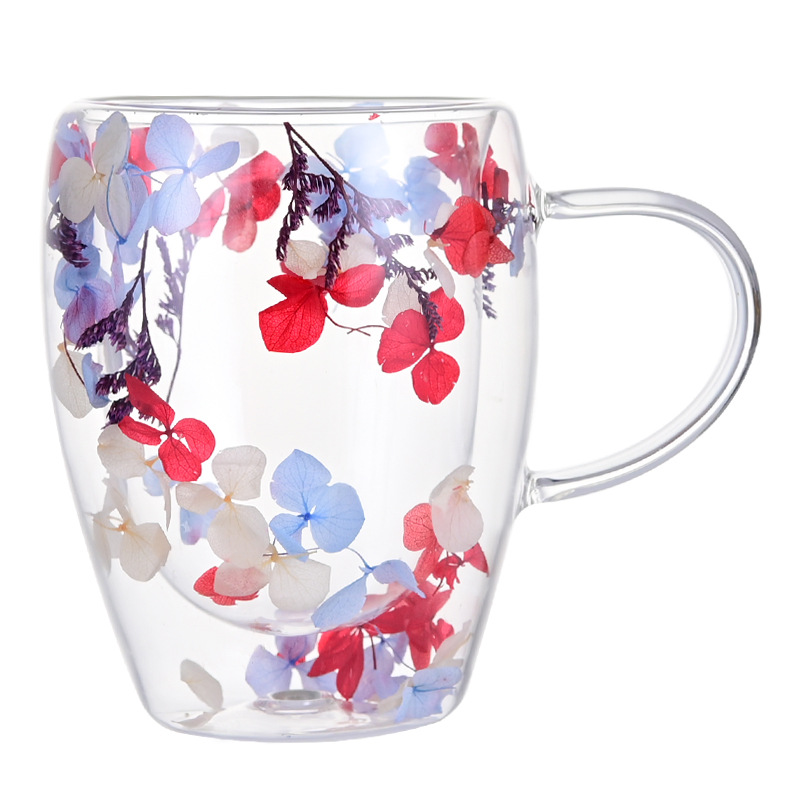 Dry Flower Cup Coffee Cup Cross-border Special Double-layer Glass High Borosilicate Heat-resistant Glass Cup Yongsheng Flower Anti-scalding Cup