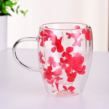 كوب الزهور الجافة، كوب القهوة، كوب زجاجي خاص بطبقة مزدوجة عبر الحدود، كوب زجاجي عالي البورسليكات مقاوم للحرارة، كوب يونغ شنغ الزهري المضاد للحرق