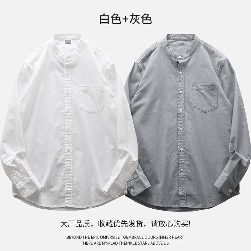 | nameOriginal | DUKEEN oxford long-sleeved white henley collar shirt |