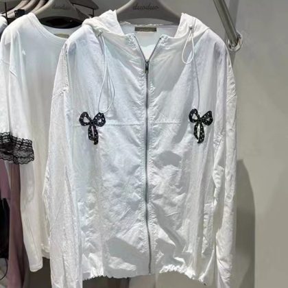 | nameOriginal | DUODUO New High-end Bow Hooded Coat Coat Spring and Summer Drawstring Zipper Loose All-match Top for Women |