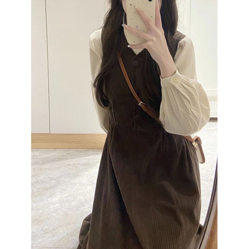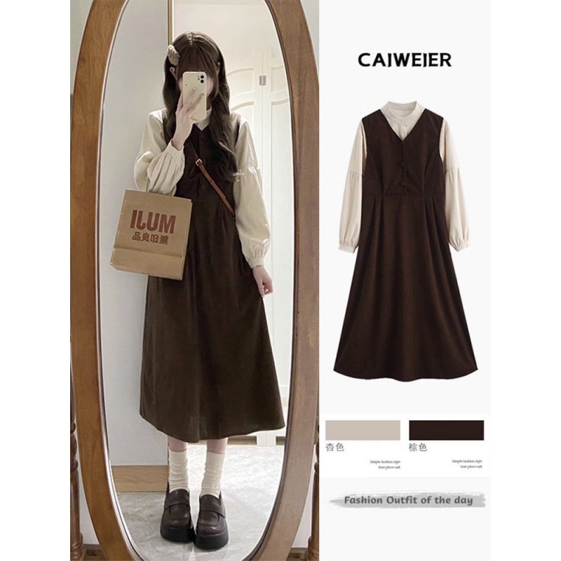 | nameOriginal | Early autumn 2024 new slightly fat girls wear brown strap dress suit |