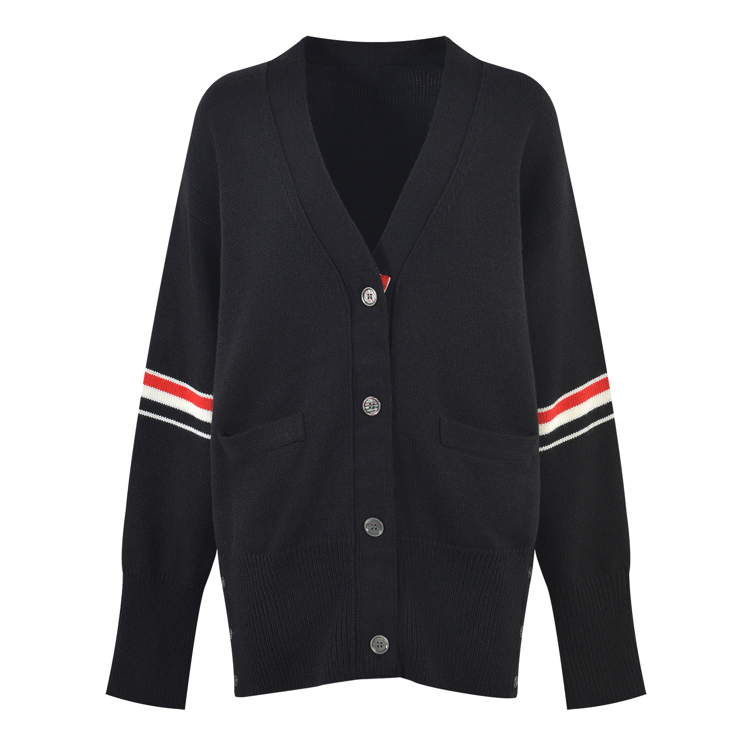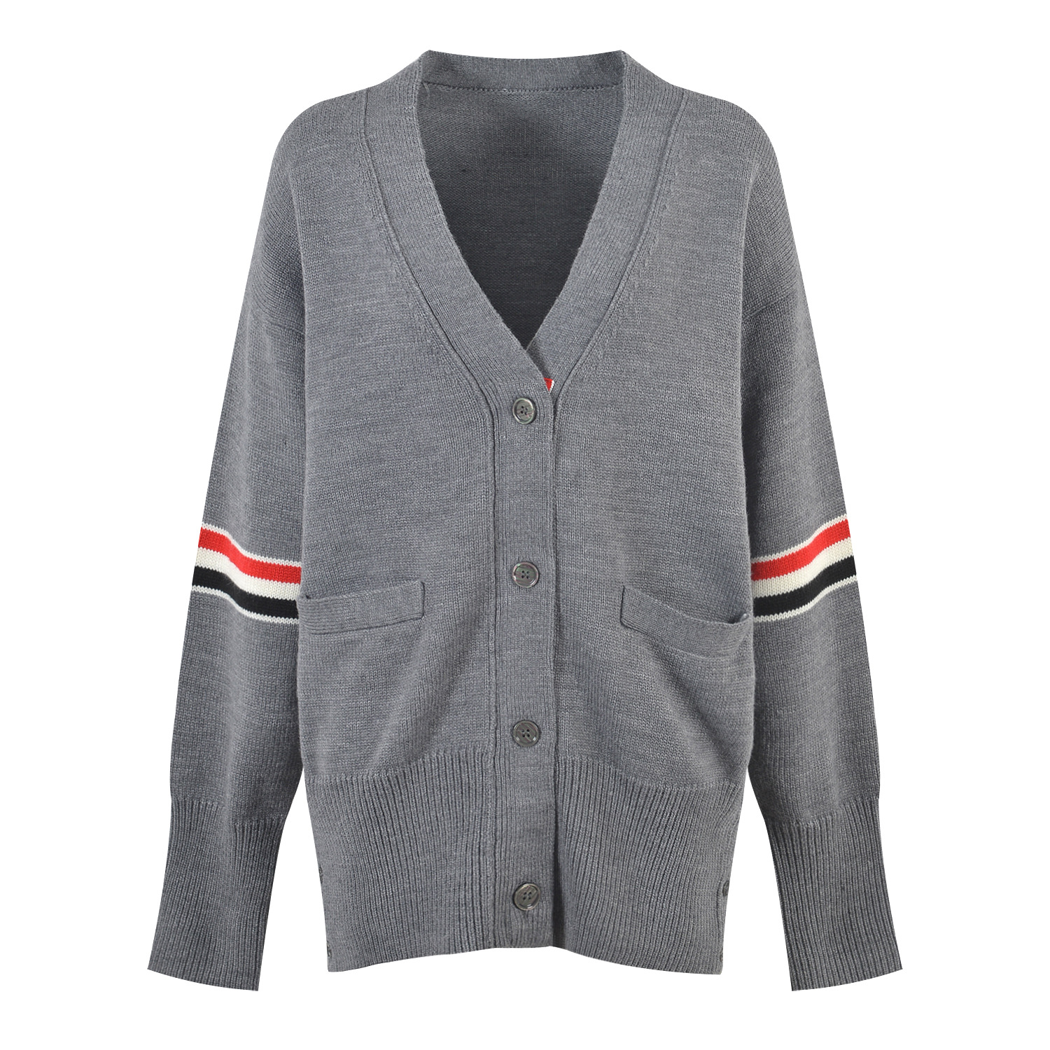 | nameOriginal | Early autumn contrast color striped V-neck knitted sweater cardigan |
