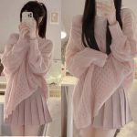 | nameOriginal | Early autumn lazy wind soft waxy wind sweater sweater loose a set of sweet cool pink skirt |
