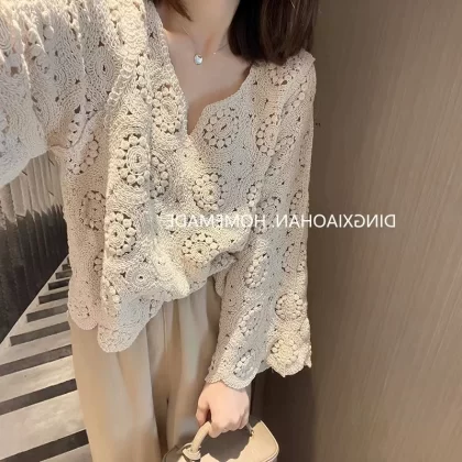 | nameOriginal | Early autumn new long-sleeved loose crocheted hollow sweater |