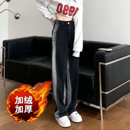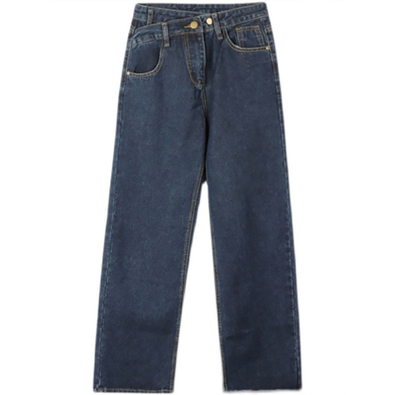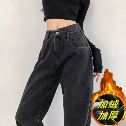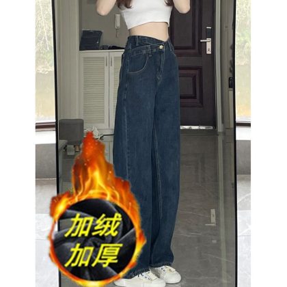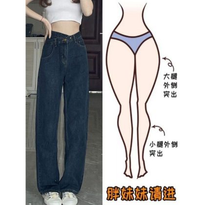Early spring high waist straight jeans for women chubby girl loose slimming irregular plus size pear-shaped wide-leg pants autumn