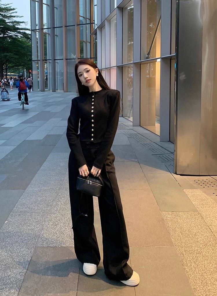| nameOriginal | Early spring wear suit women's stand collar slimming knitted sweater cardigan high waist suit wide leg pants two-piece suit |