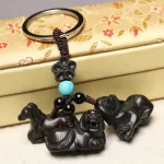 خشب الصندل الأسود اثني عشر علامة زودياك: الجرذ، الثور، النمر، الأرنب، التنين، الأفعى، الحصان، الأغنام، القرد، الدجاج، الكلب، الخنزير، قلادة سلسلة مفاتيح ثلاثة في واحد، قلادة علامة زودياك