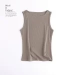Ecos Women's One-line Collar Vest Sleeveless T-shirt Elastic Slim Thin Thin Threaded T-shirt Summer Half Sleeve