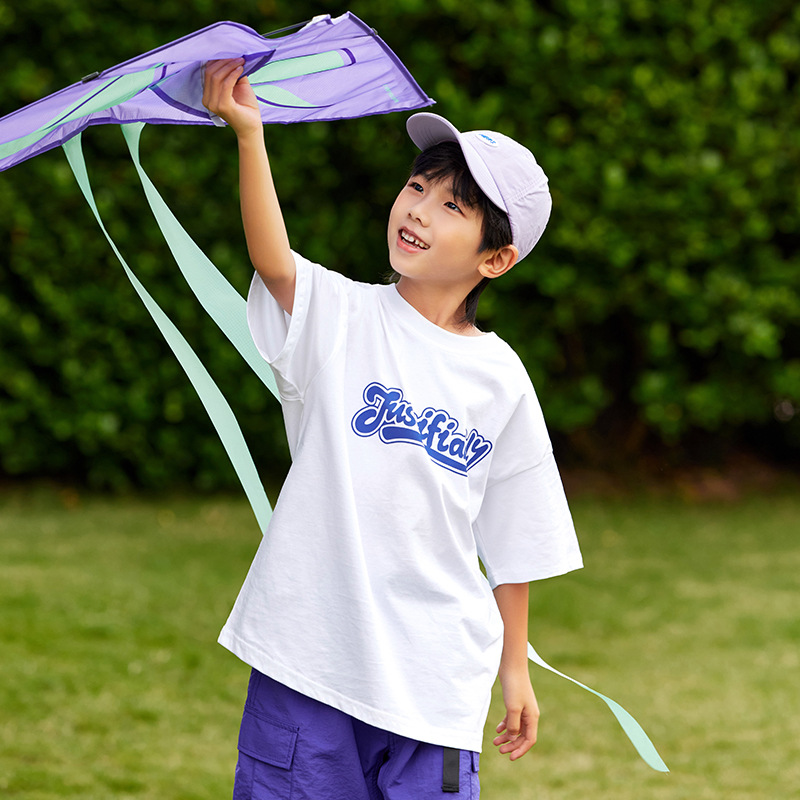 EK Children's Wear Simple All-match Boys' Loose Cotton Short-sleeved T-shirt Fried Street Dance Hip-hop CUHK Children's Top Tee Trendy