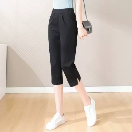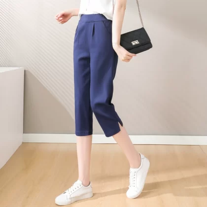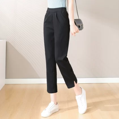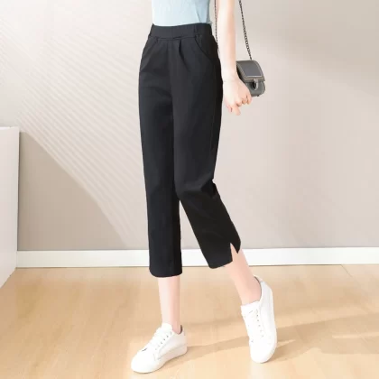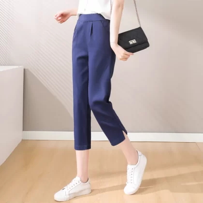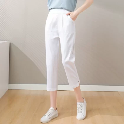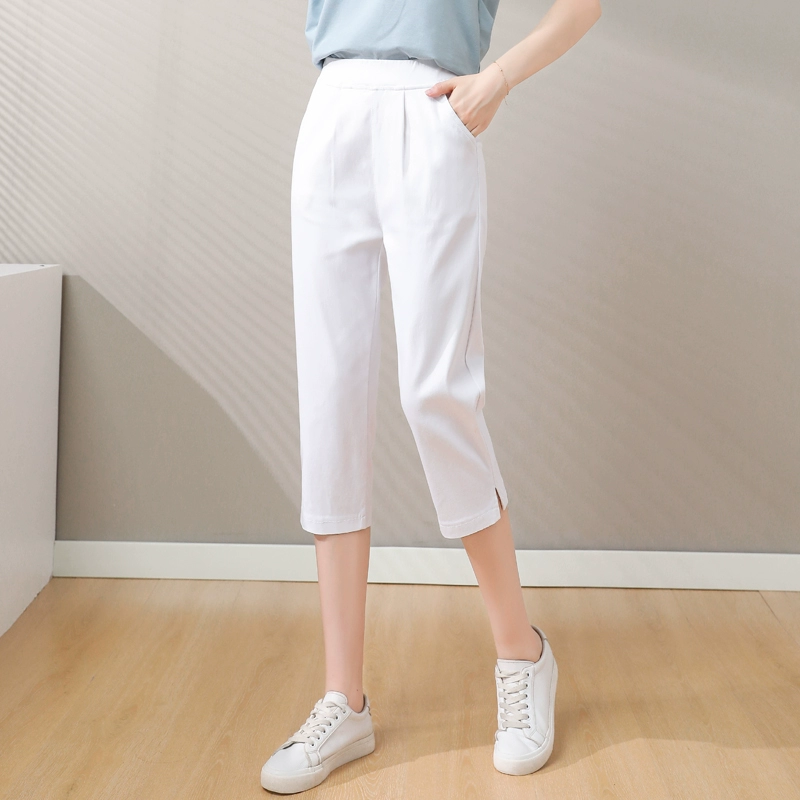| nameOriginal | Elastic waist elastic thin white casual ninth pants |
