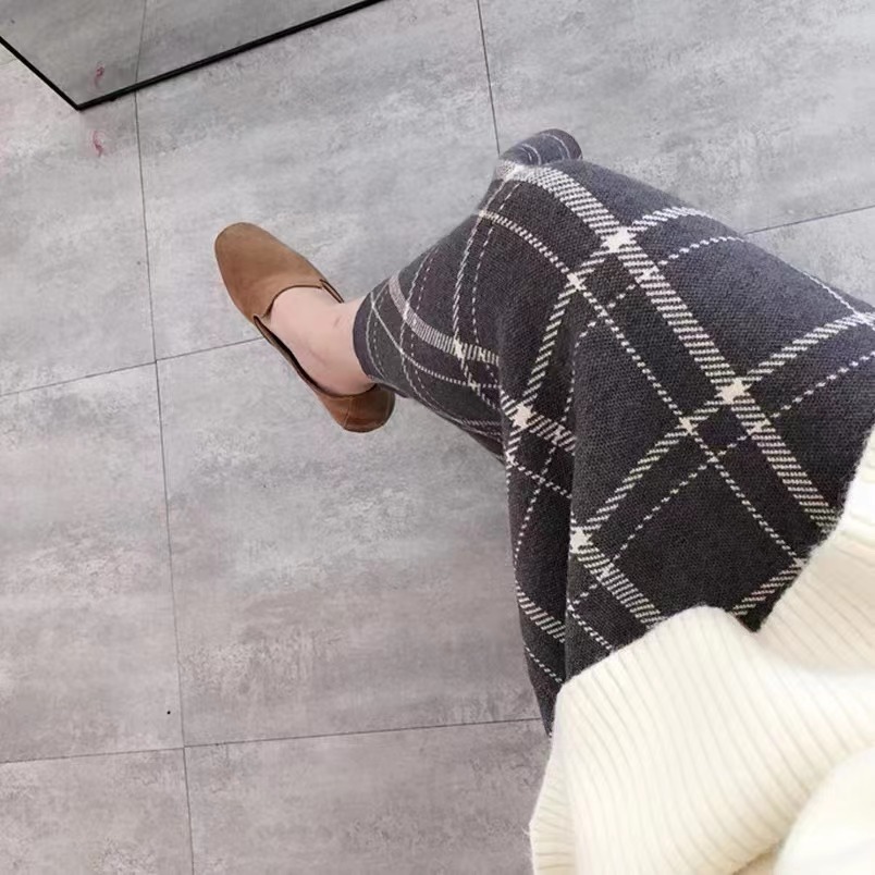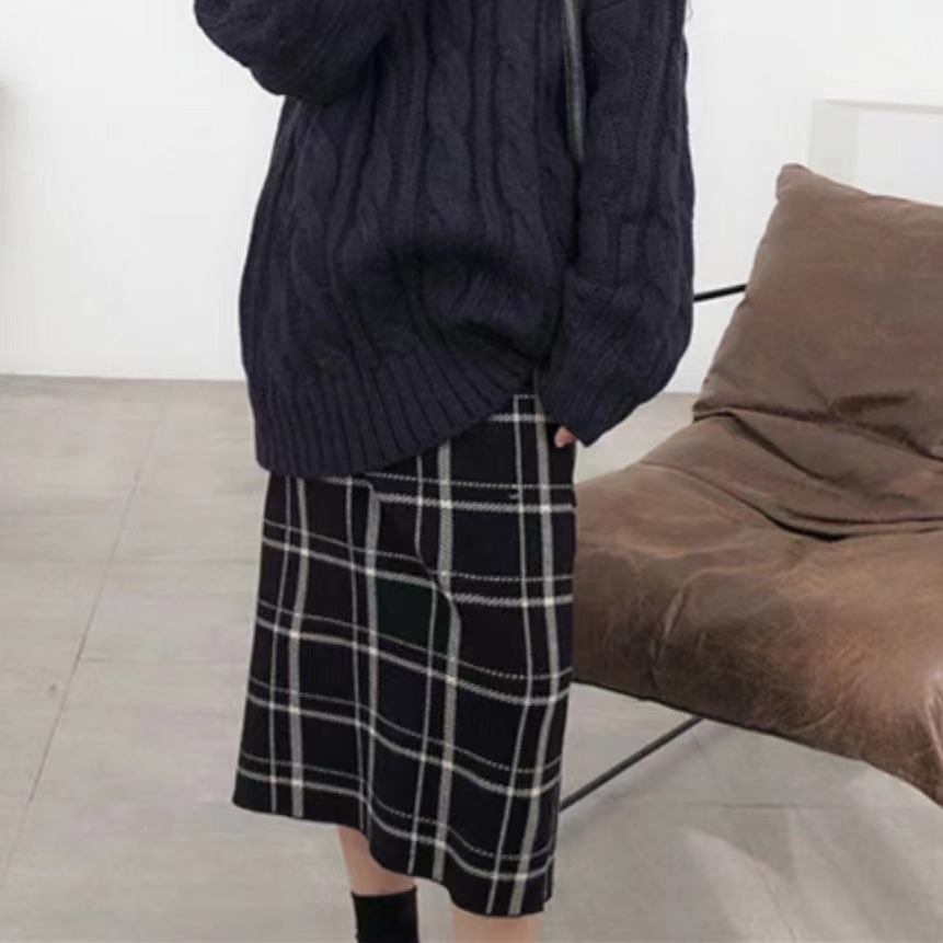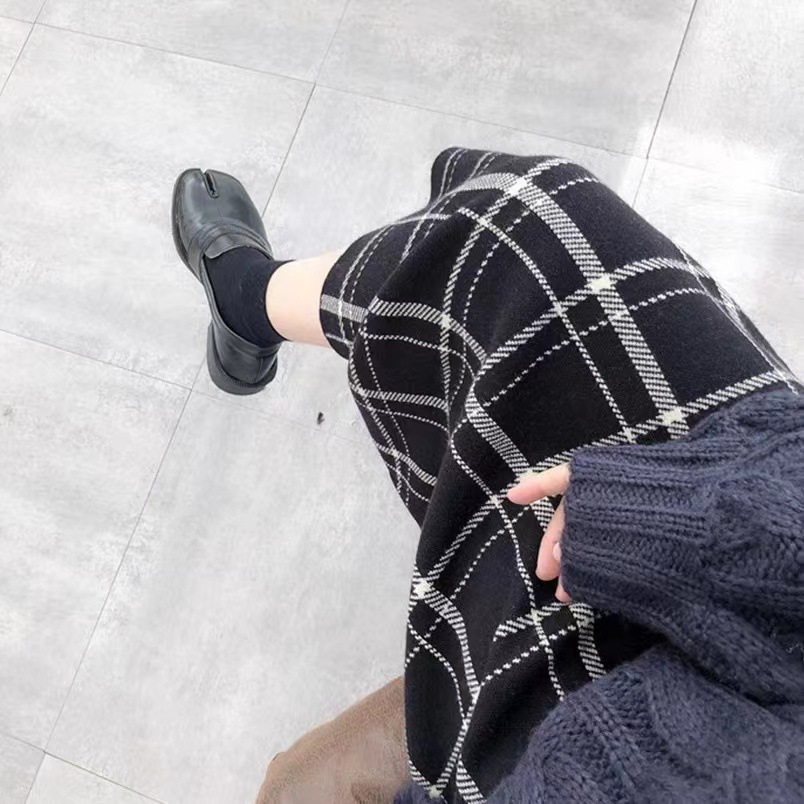 | nameOriginal | Elastic waist Plaid knitted women's black wool skirt spring and autumn Women's Mid-length high waist slimming sheath skirt |
