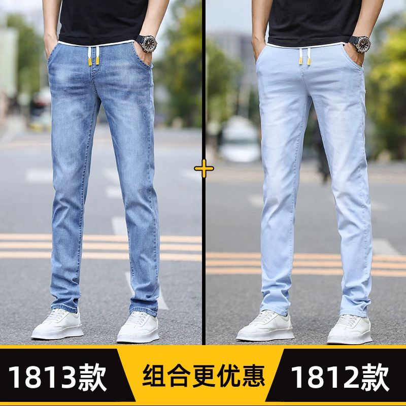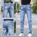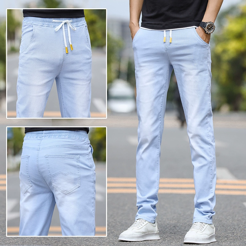 Elastic waist spring and autumn drawstring work non-magnetic jeans