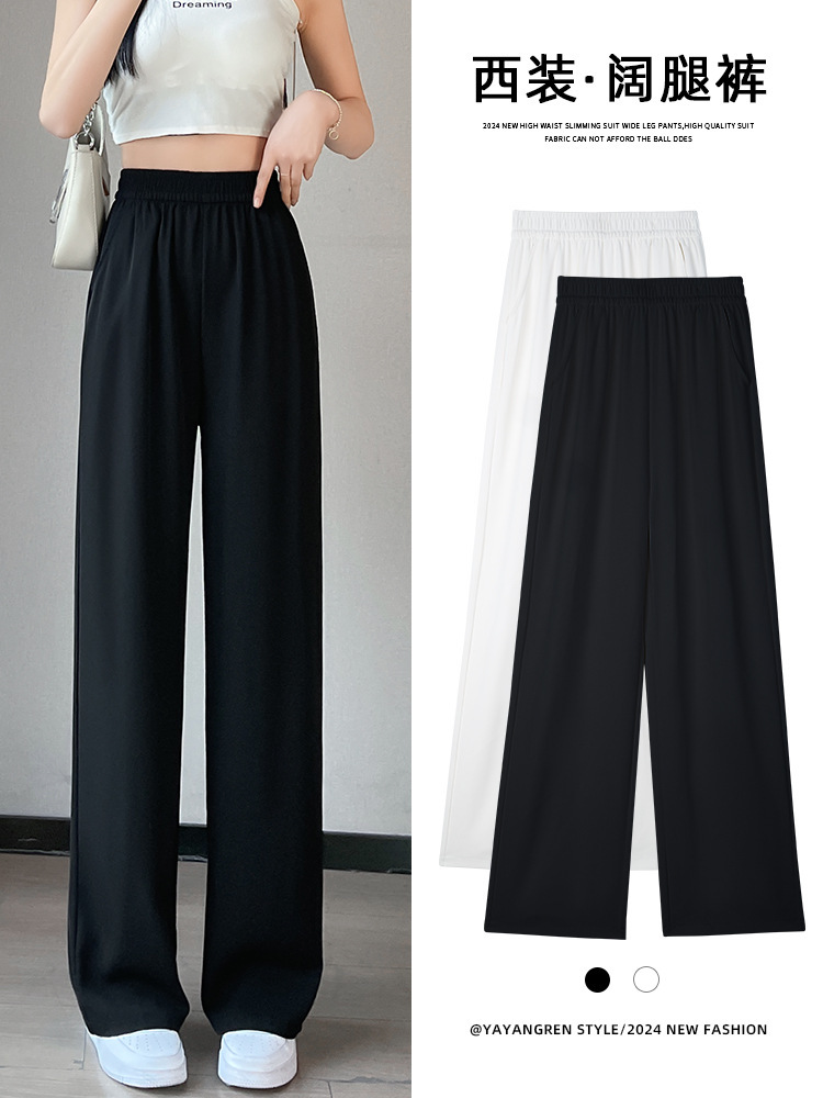 elastic waist wide leg pants women's summer thin 2024 new drop feeling casual suit pants black narrow straight pants