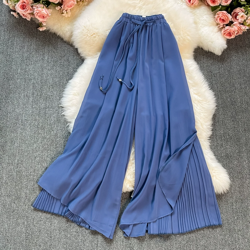 | nameOriginal | Elastic waisted draped summer chiffon thin wide-leg pants |