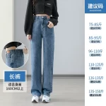 جينز مطاطي بخصر ربيعي وخريفي بطول الأرض وثنيات مستقيمة الساق