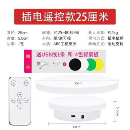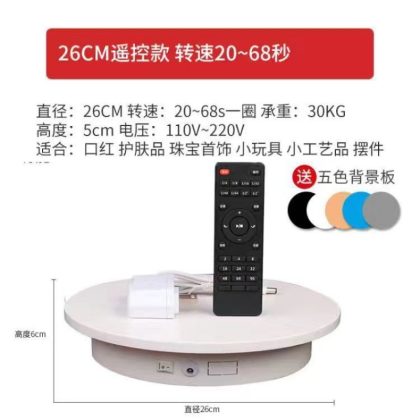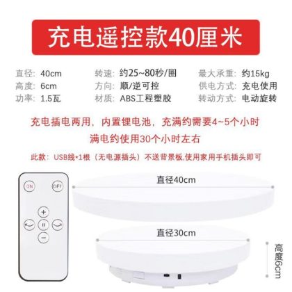| nameOriginal | Electric turntable display table remote control charging speed regulation rotating table main picture shooting live display automatic factory direct sales |