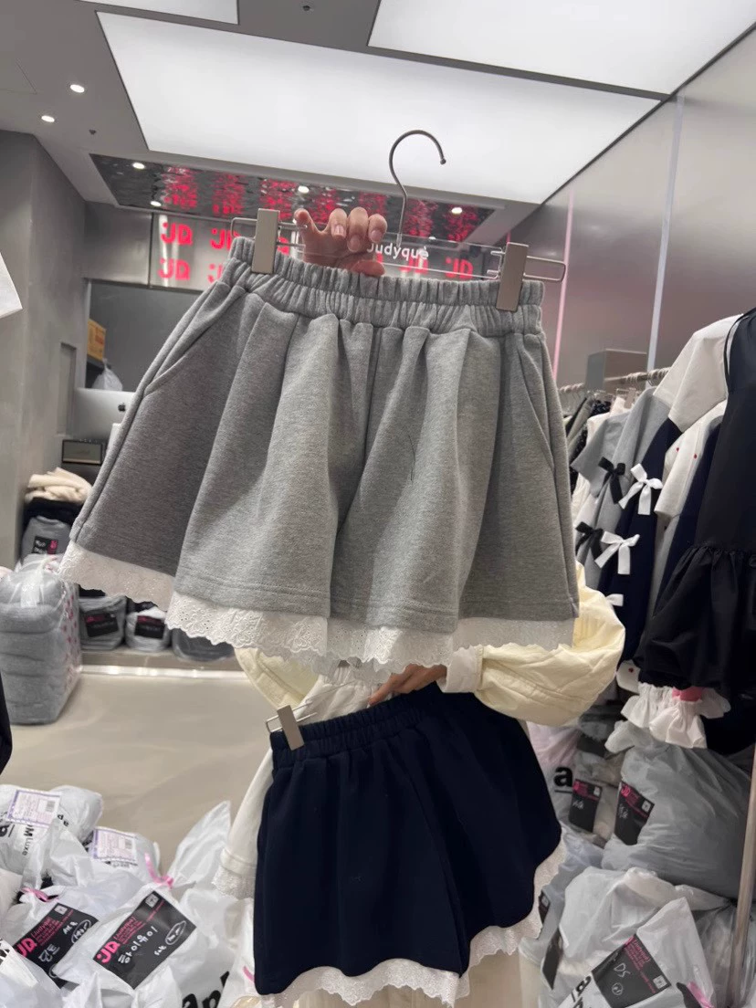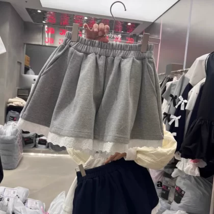 | nameOriginal | Elegant casual shorts with elastic waist and lace trim |