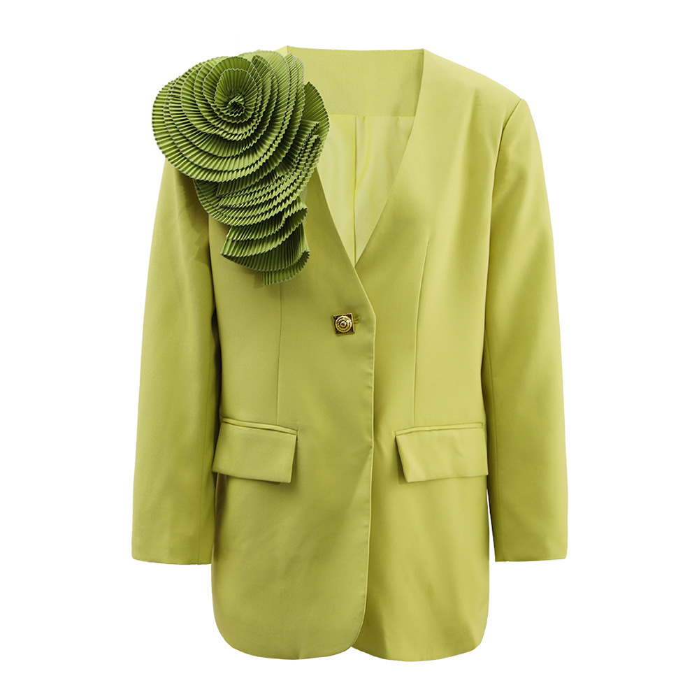 تصميم أنيق للركاب، بدلة خياطة كبيرة على شكل زهرة، سترة نسائية فضفاضة جديدة للخريف برقبة على شكل حرف V وزر واحد