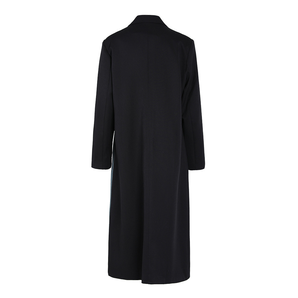 أنيقة ركاب المتخصصة التباين اللون خياطة معطف المرأة ربيع جديد الرجعية اللباس طوق تصميم الشعور معطف طويل