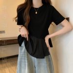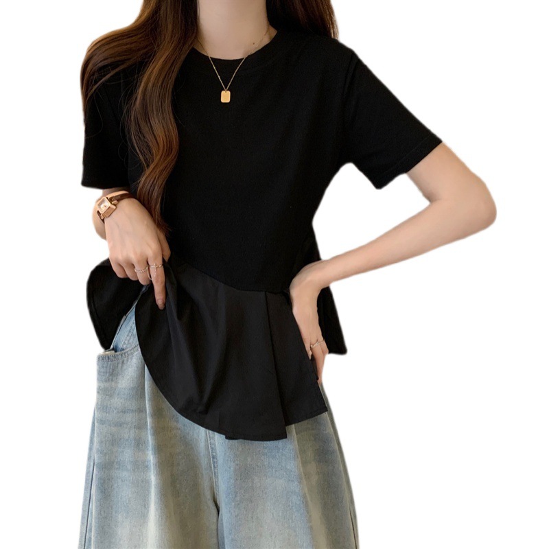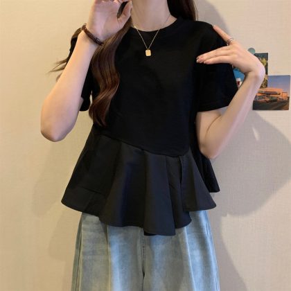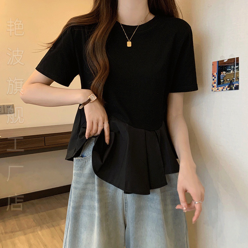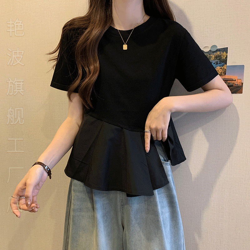 | nameOriginal | Elegant Design Style Slim Ruffled Loose Belly Covering Top Women's plus size Irregular Niche Short-sleeved Taste |