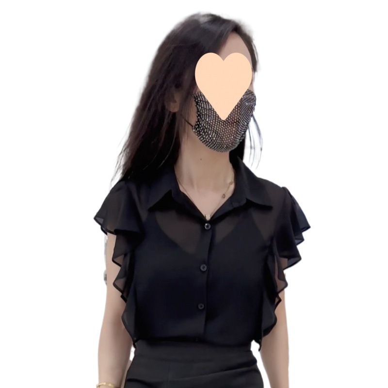 | nameOriginal | Elegant French Socialite Wood Ear Stitching Polo Collar Flying Sleeve Shirt Women's 2024 Summer New Pure Taste |