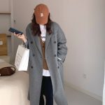 معطف صوفي رمادي أنيق للنساء لخريف وشتاء 2024 معطف صوفي فضفاض متوسط ​​الطول كوري شعبي جديد فوق الركبة