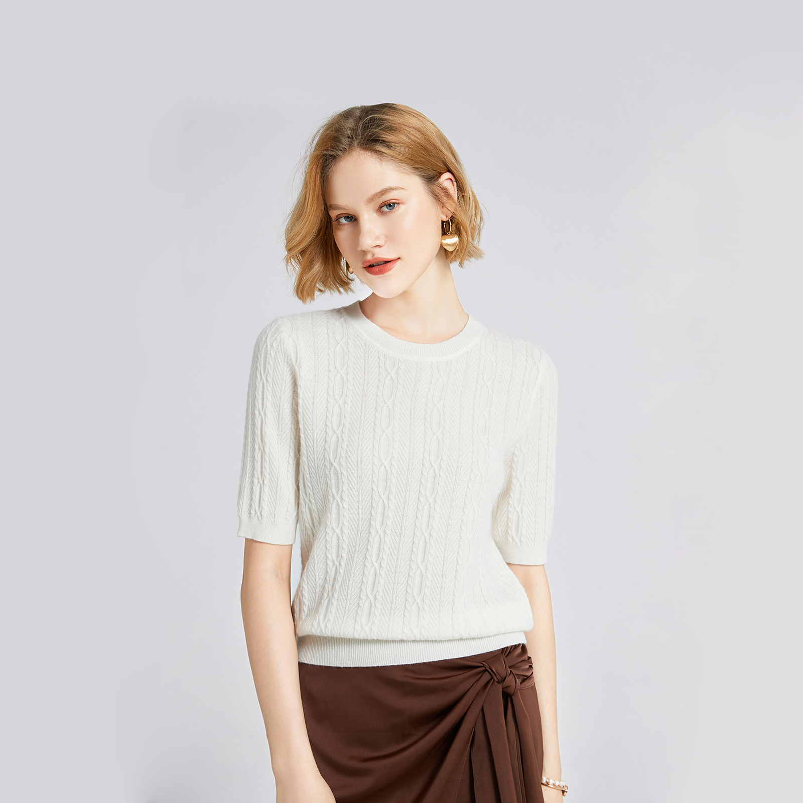 | nameOriginal | [Elegant] knitted sweater top spring women's round neck pullover slim-fit short sleeve bottoming cashmere sweater |