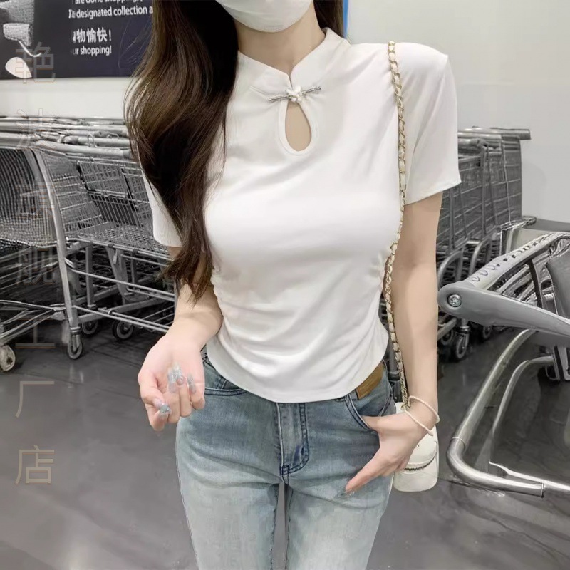 | nameOriginal | Elegant New Chinese Style Light National Style Vertical Collar Short-sleeved T-shirt Women's Summer 2024 New Style Slim Fit Plate with Taste |