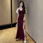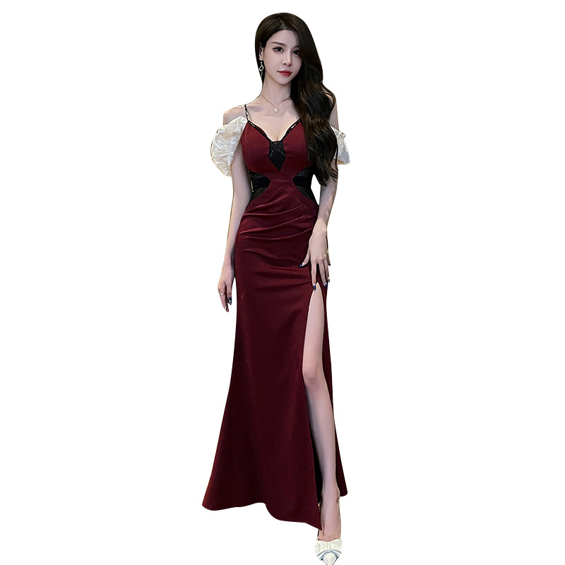 | nameOriginal | Elegant new ladies high slit evening dress birthday dress summer nightclub sexy off-shoulder dress |