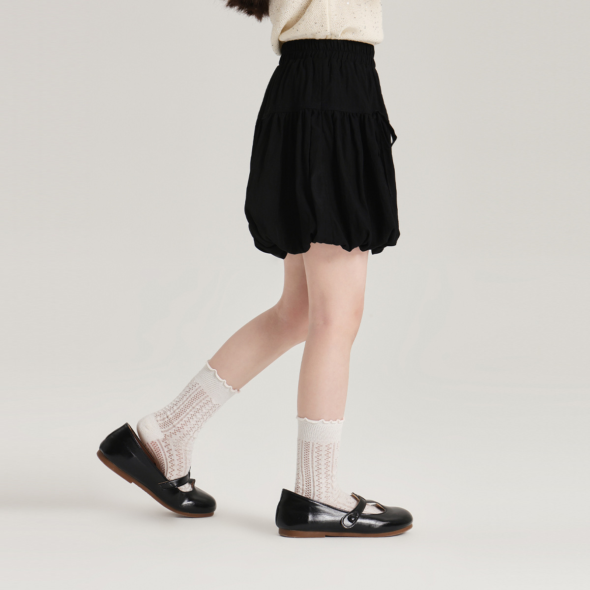 | nameOriginal | Elegant Solid Color Bud Shorts 2024 Summer New Pleated Bow Lace-up Design Girls' Shorts |