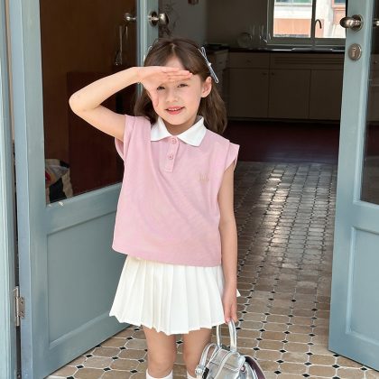| nameOriginal | Elmo Beibei girls Korean style design sense small fly sleeve POLO shirt children's western style casual color matching T-shirt 2024 summer |